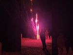 Lilla, rød, blå og grøn med hvide blink, glitter-willow, brocade-miner og kraftig crackling, afsluttet med farvede haler!